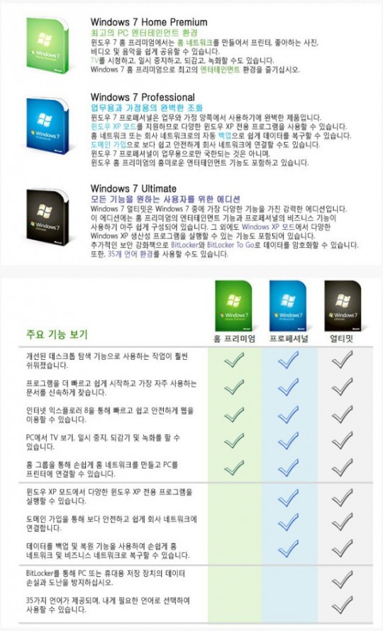 윈도우 7 버전별 상세내용