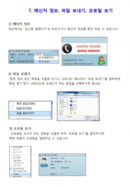 7. 메신저 정보, 파일 보내기, 프로필 보기