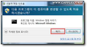 이 메세지를 나타나게 하지 않게 하기 위해서는 uac 권한을 사용안함으로 변경 하시면 됩니다.