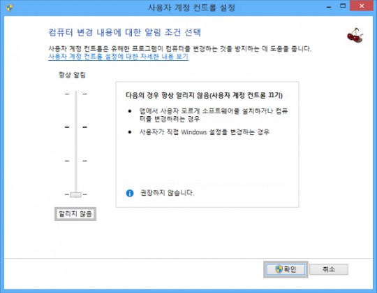 시작 -> 실행 -> UserAccountControlSettings.exe