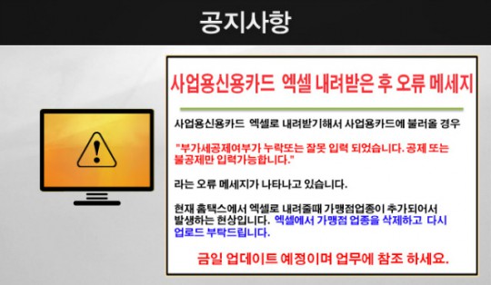 현상입니다. 엑셀에서 가맹점 업종을 삭제하고 다시 업로드 부탁드립니다.