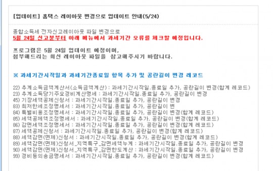 [긴급공지] 홈택스 레이아웃변경으로 오류사항 긴급 공지