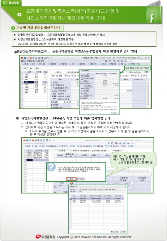 표준세액공제 및 특별소득 공제 비교 반영 및 사업소득자 연말정산 개정내용 적용 안내