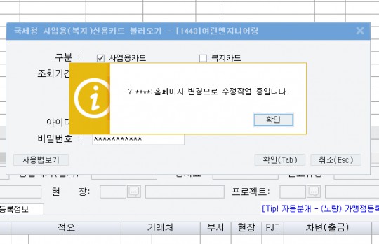 국세청사업용신용카드/현금영수증불러오기했을때 아래와같은 오류발생시