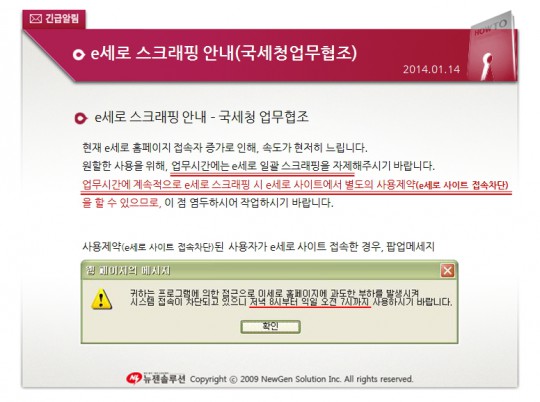 [긴급공지] e세로 스크래핑안내(국세청 업무 협조)