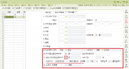 4. 사원등록에 중소기업취업감면여부에 1.여로 되어 있고 감면율, 감면입력까지 다 입력 되어 있는데도