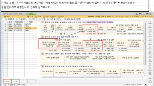 자가분 운행기록부미적용으로 (9.감가상각비입력시)와 렌트차량의(11.감가상각비상당액)입력시 21.감가상각비 미반영되는현상