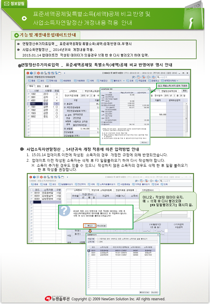 표준세액공제 및 특별소득 공제 비교 반영 및 사업소득자 연말정산 개정내용 적용 안내