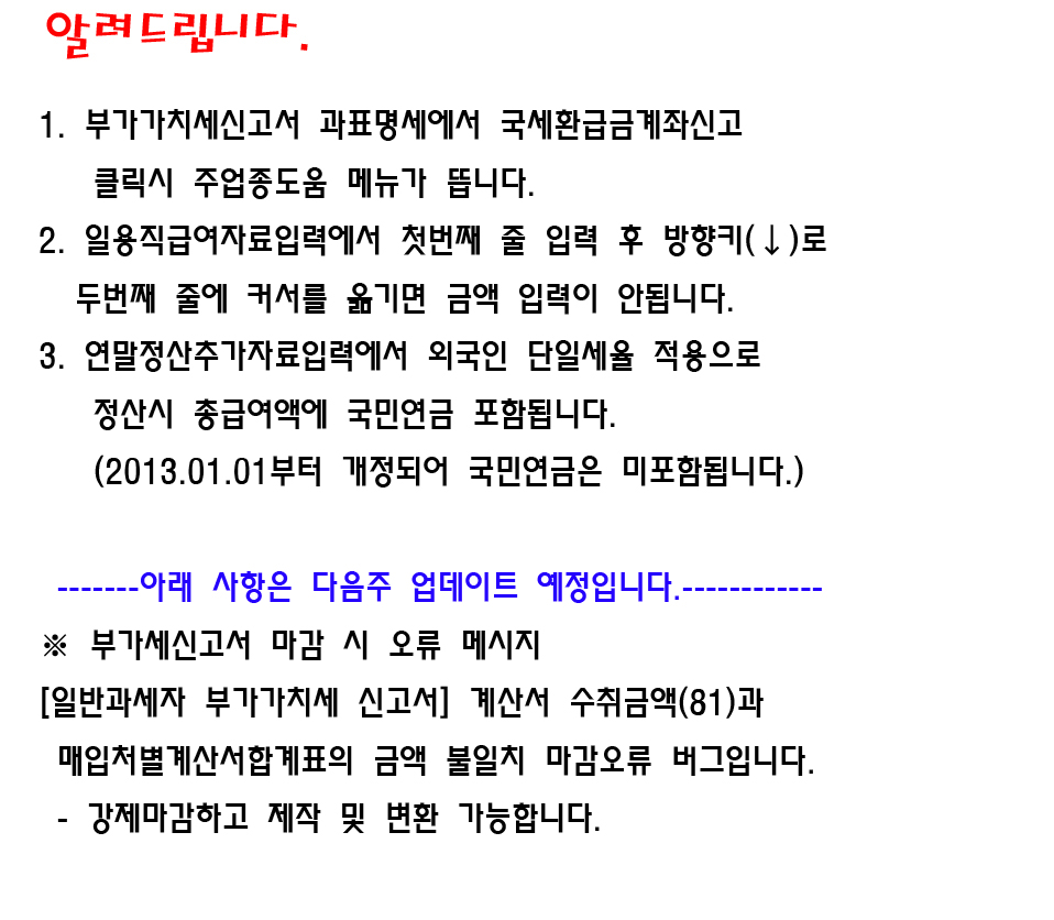 [긴급공지] 부가가치세 오류관련