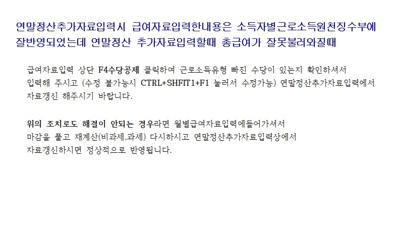 [긴급공지] 연말정산추가자료입력시 총급여가 잘못불러와질때