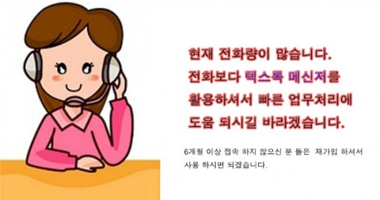 양해 부탁드리며 텍스톡 메신저를 적극 활용하셔서 상담원에게 다이렉트로 문의사항을 주신다면
