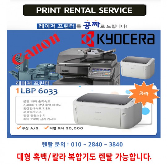본 프로모션은 2018년 선착순 프린터 렌탈 프로모션을 실시 합니다.